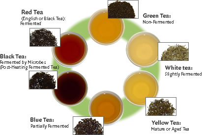 Loose Teas: Classification by Color - In China, classification of loose teas is done by the color as shown in the chart below:
